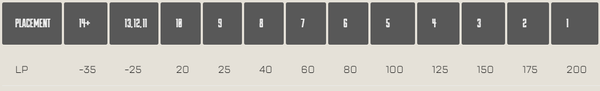 The flat 35 LP Match Entry Cost is included in the table below. Value of each bonus will be adjusted based on match placements.