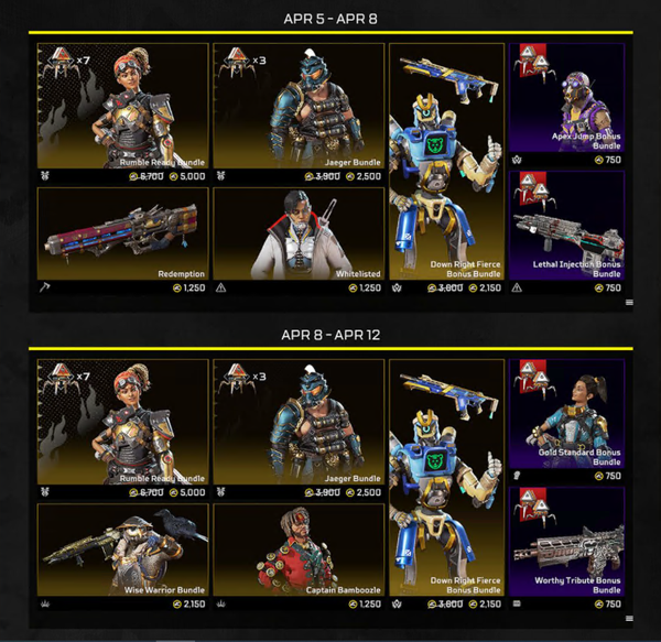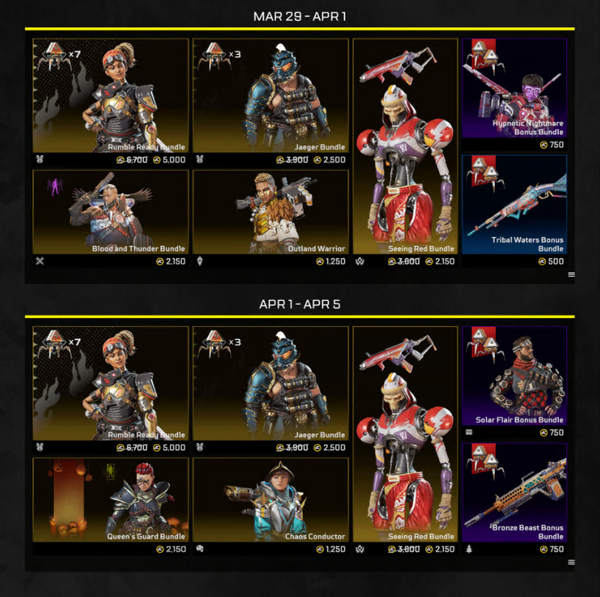 Some limited-time offers will be available in the store throughout the event. See the image below for the rundown of new cosmetics you can purchase including Rampart’s Ready to Rumble Bundle, Wattson’s Chaos Conductor Bundle, and more!