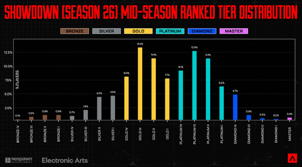 As part of our ongoing efforts to improve matchmaking in Apex Legends, it's time for another round of Ranked matchmaking testing. Starting today, Master players and above can only matchmake with Diamond players and other Masters and Predator players.
