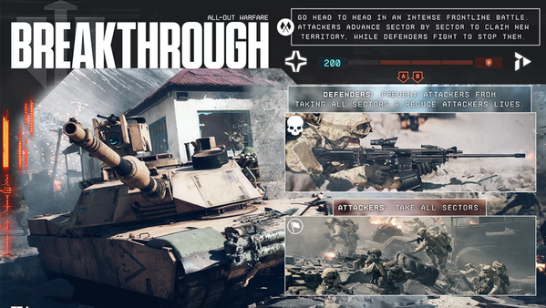Durchbruch ist ein weiterer asymmetrischer Multiplayer-Modus für große Teams, der eine Kombination aus Infanterie- und Fahrzeugkämpfen bietet. Stell dir diesen Modus am besten als Mischung aus Eroberung und Rush vor.