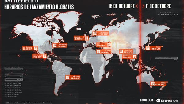 Battlefield 6 se lanzará el 10 de octubre de 2025 en todo el mundo a las 08:00 PT (17:00 CET). Todas las regiones podrán acceder al juego de forma simultánea en todo el mundo: