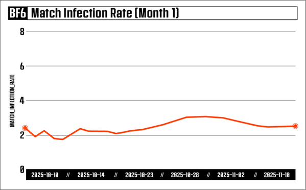 Em um Blog antigo sobre o Javelin Já falamos sobre como medir a trapaça através do que chamamos de Taxa de Infecção da Partida (MIR) — nossa medida de confiança de que pelo menos um trapaceiro afetou uma partida específica. Você pode interpretar isso como a probabilidade de você, como jogador, encontrar um trapaceiro em suas partidas. Preferimos usar essa métrica para saber se estamos sendo eficazes ou não, em vez de apenas nos basearmos no volume de banimentos aplicados, porque, mesmo que estejamos ocupados bloqueando, expulsando, suspendendo e banindo trapaceiros, isso não significa muito se não protegermos sua experiência de jogo. Isso nos ajuda a garantir que nos concentremos não apenas em pegar os trapaceiros depois que eles já trapacearam e arruinaram sua partida, mas também em impedi-los de causar qualquer impacto desde o início.