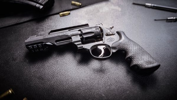 Alto dano com baixa cadência de tiro, este revólver de oito tiros é forte de perto, com uma queda considerável de dano em comparação ao .44 Magnum.