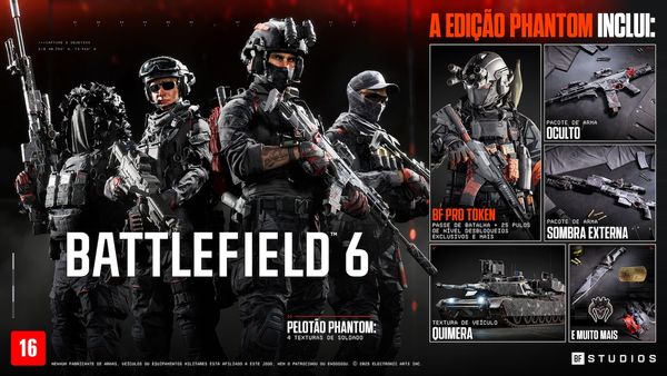 Battlefield 6 está disponível tanto na edição padrão (preço sugerido de R$ 299) quanto na edição Phantom (preço sugerido de R$ 429)***