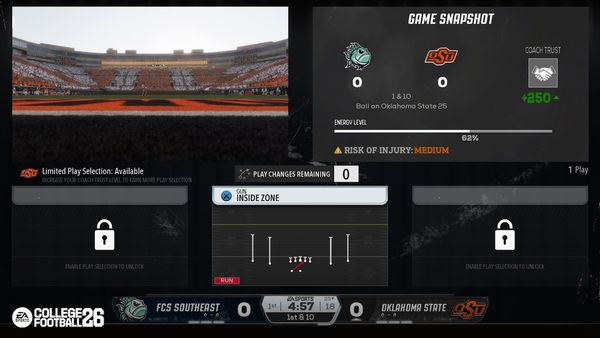 In College Football 26, we’ve added more dilemmas and interactions that challenge the balance of your meters. And in response to community feedback, all in-game coach challenges now award XP, rewarding performance and giving every moment more value.