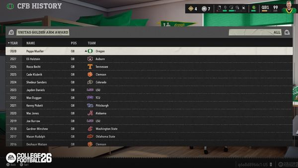 In total, there are more than 160 rivalry, bowl, and individual award trophies to collect. Whether you’re flexing your second Heisman, third natty, or just looking back on the moments that defined your storied career, the Trophy Room is built to celebrate your legacy. College Football has a list of all time greats — those unforgettable players who became synonymous with the sport. Now, your legacy, name, and moments live on, immortalized forever in your Trophy Room.