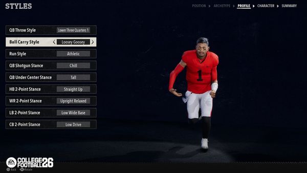 This year, we’ve expanded our styles and stances system with deeper customization options. Choose from over 40 throw styles, and select how your player runs, carries the ball, and lines up pre-snap. Whether you’re clapping to call for the snap in shotgun or crouching textbook-tight under center, these animations bring your player’s personality to life.