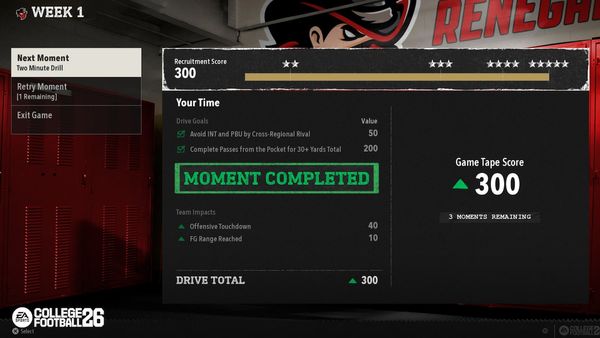 If you're playing on a difficulty other than Heisman, you’ll also have the option to restart a moment from the summary screen. The number of retries available scales with your difficulty setting, rewarding players who take on greater challenges with fewer second chances.