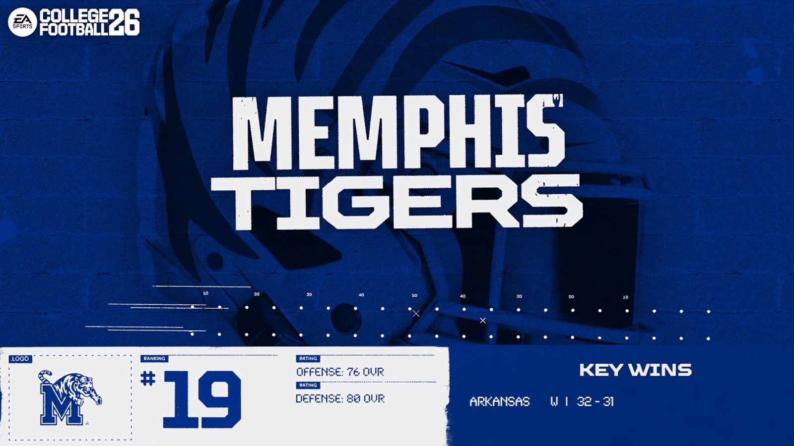 - The Memphis Tigers make their debut at #19 after dominating in wins against their first 6 games. They have some tough matchups rest of season as their schedule is primarily conference play. A matchup against USF on October 25th will be one to watch in the coming weeks.