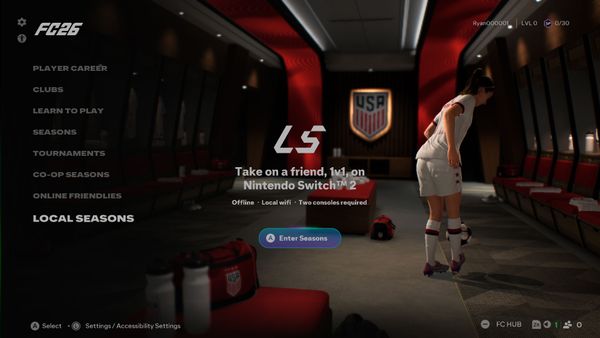 With GameShare via GameChat, you can invite another Nintendo Switch 2 player into your session as a guest via online play, even if they don’t own FC 26. The host can also add up to three local players, making it possible for four people to play together.