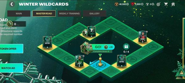 The Master road is a path consisting of 20 squares filled with rewards. The gold squares contain distinct rewards that include Winter Wildcards Players, including a 91 OVR ST Gary Lineker!