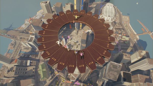 Some people build sand castles in the sky, Burryaga and NDY and SK8N crews party on a floating coffin ring; Credit: Burryaga