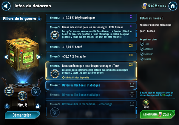 • Fixed an issue that caused too much bonus damage to be applied to abilities when using an AoE Attack and the bonus for Attackers in Datacron from Set 25, Pillars of War, "Whenever an Attacker uses a Special ability, deal 25% more damage for each buff on target enemy"