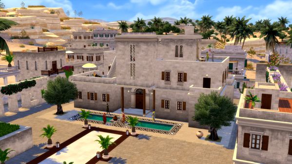 LINDA: Ich wollte keine abgetrennten Bereiche, keine hohen Wände, keine geschlossenen Sofas und kaum Türen. Ich wollte, dass Sims beim Vorbeigehen die Geselligkeit bemerken, die Gespräche hören und (mit Vorstellungskraft!) den Duft des Essens riechen, und ohne Barrieren war das möglich. Westafrikanische Häuser verfügen über so eine tiefe Verbindung zur Erde, und das wollte ich mit dem Gebäude zeigen. Die Dächer bedecken nur, was bedeckt werden muss, ich verwehre meinen Sims nicht die Sonne. Die Wände sind voller Grün, das Material selbst steckt voller Leben. Ich hatte eine Menge Spaß dabei, mir vorzustellen, dass meine Sims einfach nur hindurchgehen, um schneller zum Ziel zu kommen, aber dann für einen Moment innehalten und die kurze Verschnaufpause im Schatten genießen, ehe sie weiterziehen. Jedenfalls ist es nicht einschränkend, sondern verbindet gezielt die Sims miteinander, die Sims mit der Erde und die Orte miteinander.