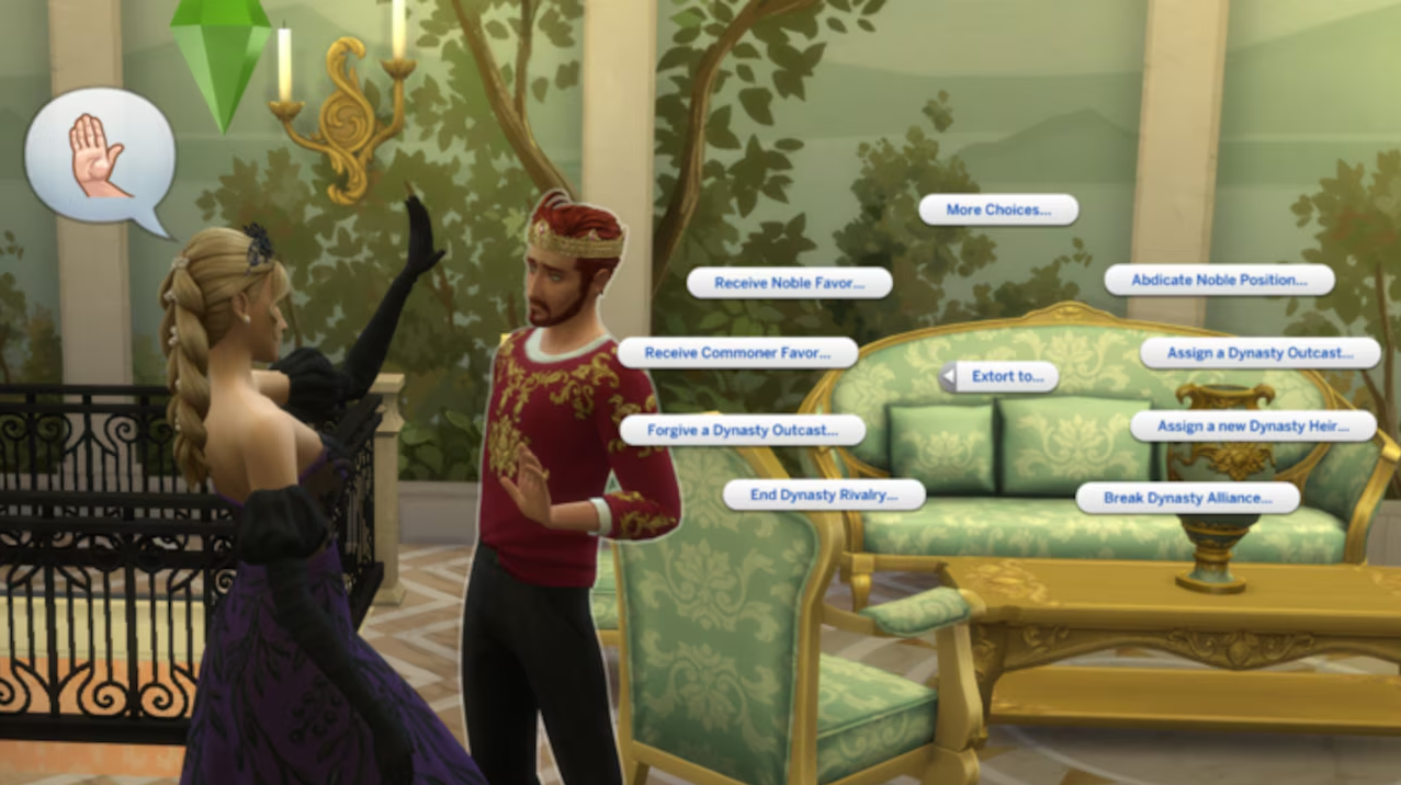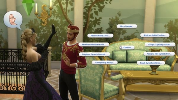 Wo wir gerade von Macht sprechen: Die Geheimnisse eines anderen Sims zu kennen, ist die perfekte Möglichkeit, um die Macht über diesen zu erlangen. Adlige, die von einem rivalisierenden adligen Sim am Aufstieg gehindert werden, können diesen erpressen und so dazu drängen, die eigene adlige Stellung aufzugeben, sodass der Weg zur Krone frei ist. Dabei handelt es sich um gemeine Interaktionen, die in der Kategorie "Bösartig" zu finden sind.