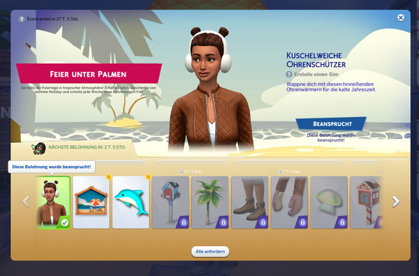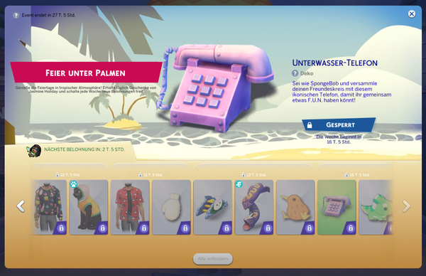 Im "Feier unter Palmen"-Anmelde-Event hat Jasmine drei Belohnungen dabei, die es nur für bestimmte Packs gibt: