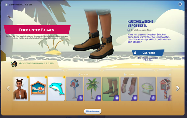 A: Das "Feier unter Palmen"-Event beginnt am 16. Dezember um 18 Uhr MESZ und endet am 13. Januar 2026. Du musst die Belohnungen vor dem 13. Januar 2026 um 18 Uhr MESZ beanspruchen, sonst verfallen sie.
