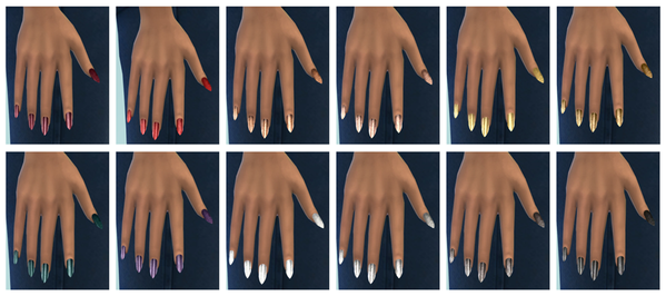 12 new luxurious jewel-toned and metallic almond-shaped Nails have been added to Create a Sim.