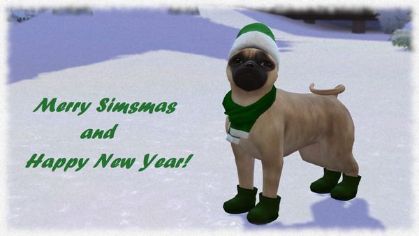 It is such a cute Simsmas card with Mopsi! 🙂The festive outfit is great!