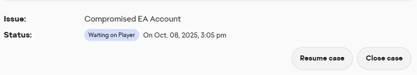 My Apex account was suddenly shown as banned while I was playing with my classmates on the evening of August 10, 2025. Later, I checked and found that it was due to an unauthorized(at odesa, an area even i not know) login to my EA account from a different location, as the account had been hacked. I changed the account password yesterday, but the hacker still logged in this morning. They even modified my linked email and phone number, which has prevented me from changing them to my other email addresses. I submitted an appeal to the human customer service team the day before yesterday, but I haven't received a response yet. I'm hoping to find a solution to this issue.