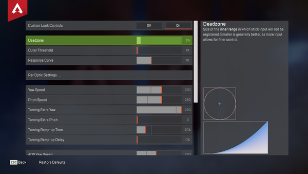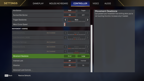 For Right Stick there are a lot of options. For left stick there is only small or large I need More DEADZONE __ So that my Character does not move alone.