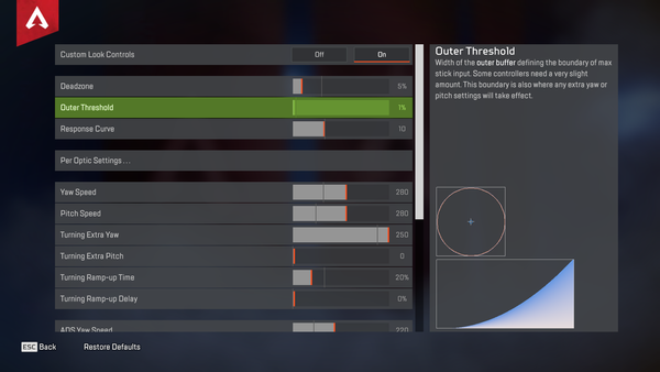 Outer Threshold __ To avoid having to tilt the Stick to the maximum.