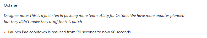 I assume the devs were doing both Mirage and Octane at the same time but put more focus on Mirage. Mirage turned out great. Honestly, you don't want them to rush Octane changes then.