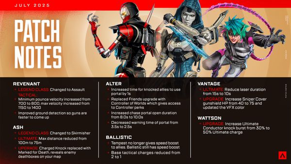 – Änderungen an der Balance von Ash, Revenant, Wattson, Vantage, Ballistic und Alter (weitere Details siehe unten!)