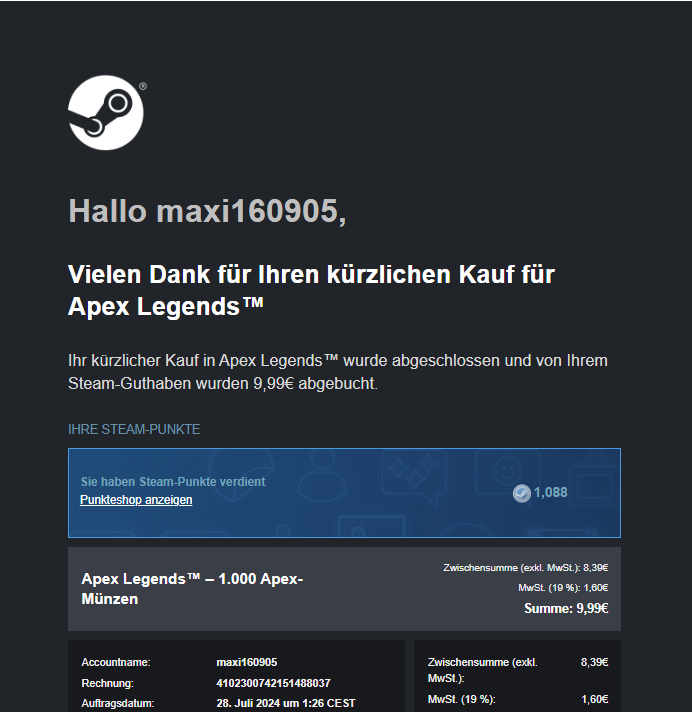 Hallo Zusammen, ich habe beim EA Support einen Fall geöffnet, da ich bei Apex Legends 2 mal für 10€ Apex-Münzen gekauft habe aber keine Münzen erhalten habe. Nun wurde mein Fall geschlossen mit dem Status Behoben, sobald ich auf Fall fortsetzten drücke sagt er mir ich kann meinen Fall nur schließen um einen Neuen zu machen. Nun würde ich gerne Wissen warum mein Fall geschlossen wird und als Behoben gesetzt wurde ohne das ich nur ein bisschen Hilfe bekommen habe. Meine Münzen habe ich ebenfalls nicht erhalten. Ich hoffe das ich diesmal etwas Hilfe bekomme.
