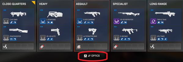 In Lockdown (z.B.) seht ihr in der Waffenauswahl den unten in rot eingekreisten Button: Hiermit lässt sich nach meiner Interpretation die jeweilige Optik noch vor Rundenbeginn anpassen.