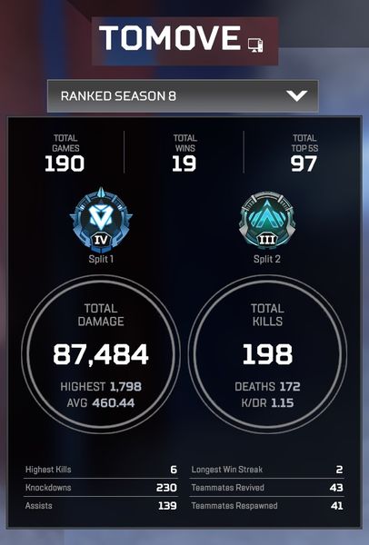 Ich war direkt im ersten Match überwiegend in Platin - Predator Matches unterwegs, der Counter fing aber trotzdem bei rookie an!