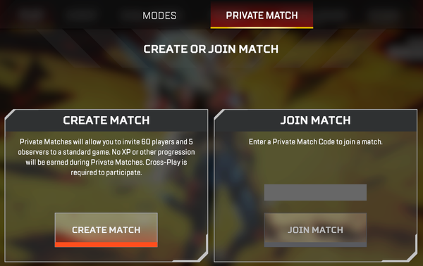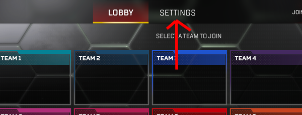 To change the settings for the match, select the settings tab in the top middle of the lobby: