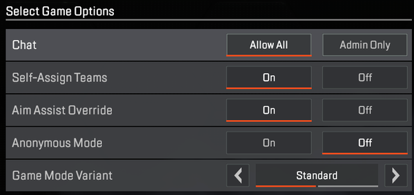 For Battle Royal modes, the "Game Mode Variant" option is available if you wish to turn on tournament mode: