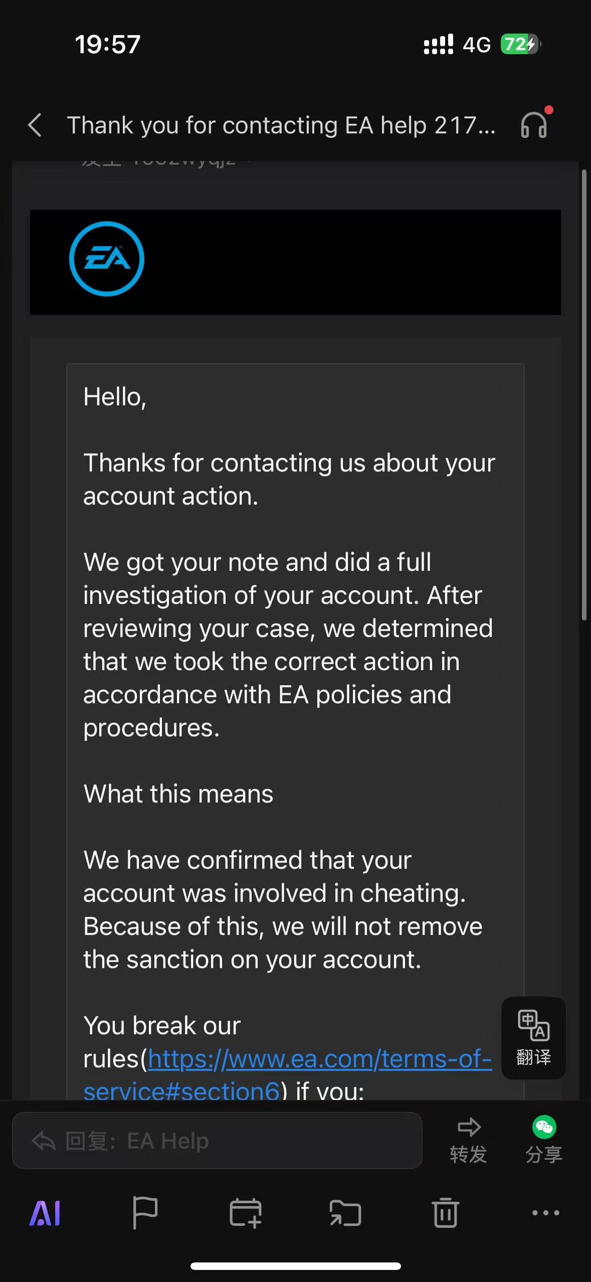 zhenzhongyongj Sorry to hear about your issue with contacting the EA TOS Team, however sadly bans cannot be handled here on the forums.