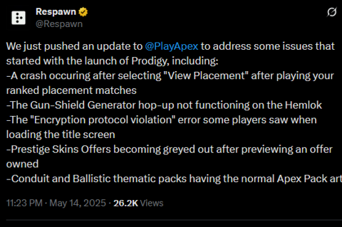 Good Afternoon, I have waited a week to play Apex and I still get stuck at the encryption protocol violation screen when logging in on my playstation. Is there a quick fix for this?