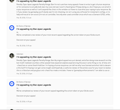 I'm mainly writing this to express my frustration with this situation, hoping to get some response or closure that my case is actually being handled and looked into and re-reviewed so it can be made clear that I wasn't cheating like I will continue to claim. And my original post discussing this subject being merged into some other post on the forums - What to do if your Apex Legends account got banned or suspended | EA Forums - 5477078 (You can read this if you want)