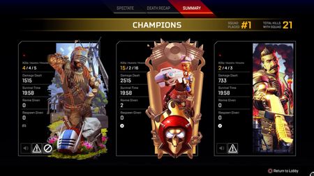 Funny story from last night. I'm JM and ping a spot outside fragment. One teammate pings fragment and breaks off. I land and I guess the other guy also broke off and landed in a third spot. He's yelling at us so I type: "game made me JM." He threatened to grab our banners if we die and not respawn us - this is a ranked match. So I wait around the edge while he camps the last 2 teams and third parties when there is one other team left. He knocks 2 and the last guy takes him out. That's when I go up there and empty my inventory. Man was he PO'd. LoL.