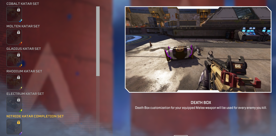YungSlowboat Considering that the Nitride deathbox, (which is locked for me), says "completion set", I believe that means that you would need to own every single Katar, its power core, deathbox, etc., before the Nitride set would unlock.