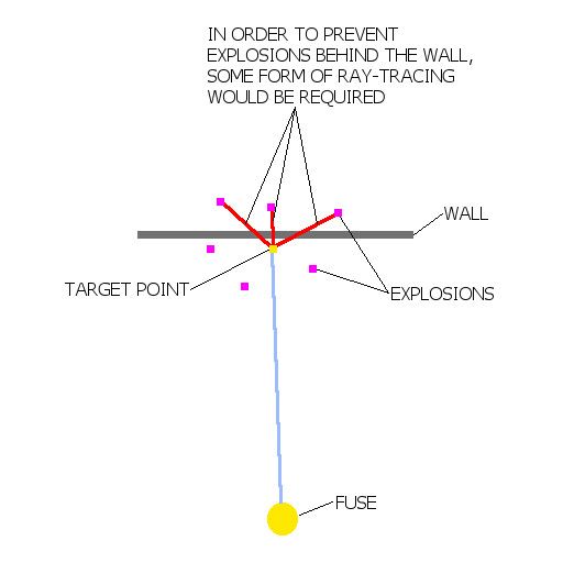 - Wolferato3 years agoNew AceThat's because it has a randomized local area effect around the target point. Each explosion would have to track if there's some object or a wall in the way, through a form of ray-tracing. That's too intensive and would add to lag.