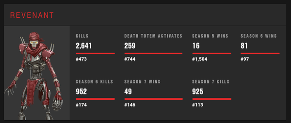 - 5 years ago@hayhor Just checked and I am now #38 for S7 kills with Revenant.