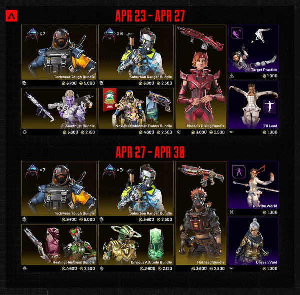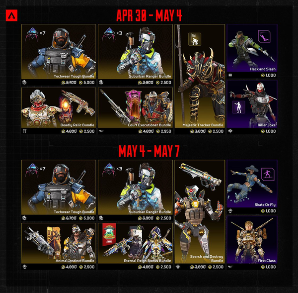Explora ofertas por tiempo limitado en la tienda, incluido el lote Exploradora suburbana. Echa un vistazo a las ofertas semanales, como el lote Impetuoso (disponible del 27 al 30 de abril de 2024) o el lote Búsqueda y destrucción (disponible del 4 al 7 de mayo de 2024).
