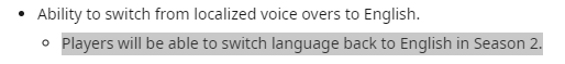 Je vous remercie pour votre retour concernant les voix du jeu et je comprends que cela puisse être frustrant de ne pas pouvoir choisir la langue que vous souhaitez mais comme l'a annoncé plus haut @Myst02, l'option pour changer de langue sera normalement disponible lors de la Saison 2 :