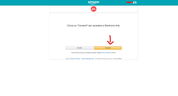 3) Usando le credenziali Amazon, se fatto correttamente, accederete a questa schermata. Cliccate su Continua.