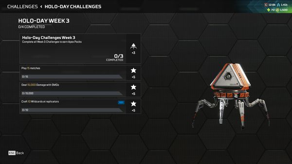 Zdobywaj nagrody przez całe wydarzenie, wykonując cotygodniowe wyzwania wydarzenia, w tym wzmocniony pakiet sezonowy, pakiet holo-świąt i rzadkie pakiety Apex.