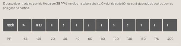 | Custo de entrada do Ranqueado:     0 a 175 → 35