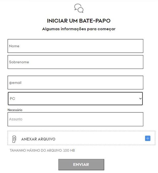 *A disponibilidade de escolha da opção chat/ e-mail pode mudar de acordo com o assunto selecionado.