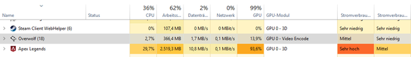 **Auffällig ist allerdings die GPU-Auslastung aus Apex und Outplayed in Summe. Diese liegt bei über 100 %.