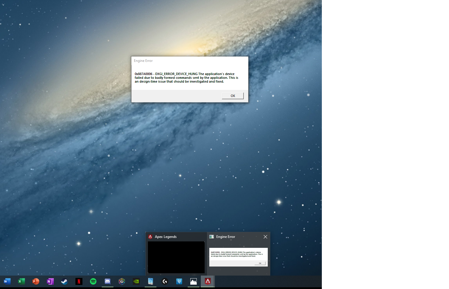 "0x887A0006-DXGI_ERROR_DEVICE_HUNG The application's device failed due to badly formed commands sent by the application. This is an design-time issue that should be investigated and fixed."