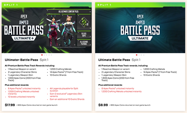 - Upgrading from No Pass/Premium to Ultimate+ | $20 - (refunds 950 Apex Coins if upgrading from Premium)