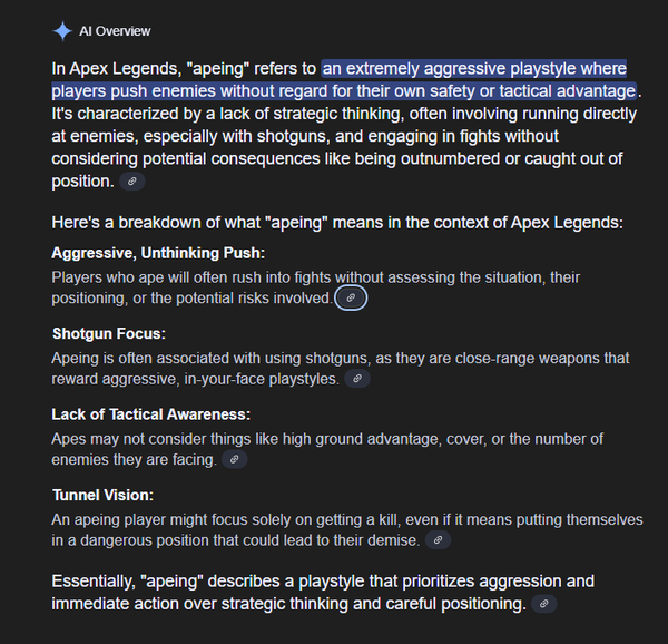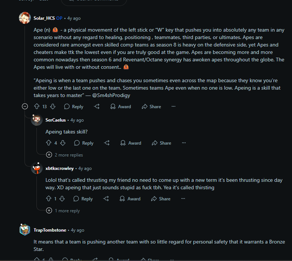 srvalyhyhq7jNewcomer7 months agoBANNED FOR SAYING APEX IN APEX I got banned for saying APED in apex someone needs to review my case and unban me this is ridiculous even google AI knows what it means